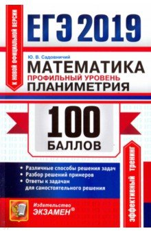 Юрий Садовничий: ЕГЭ 2019. Математика. Профильный уровень. Планиметрия. 100 баллов. Эффективный тренинг к новой официальной версии ЕГЭ.