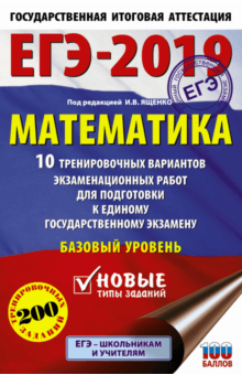 Ященко. ЕГЭ-2019. Математика. 10 тренировочных вариантов экзаменационных работ для подготовки к ЕГЭ. 100 баллов. Базовый уровень. Государственная Итоговая Аттестация. Новые типы заданий. 200 заданий