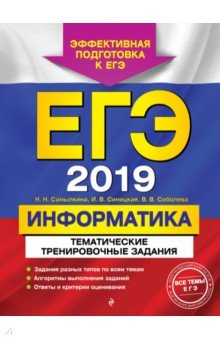 Основной рекомендуемый учебник, решебник и ГДЗ в этом году для подготовки к экзаменам ЕГЭ - это новый сборник Самылкина, Синицкая, Соболева: ЕГЭ 2019. Информатика. Тематические тренировочные задания
