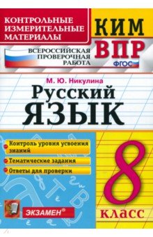 Основной рекомендуемый учебник, решебник и ГДЗ в этом году для подготовки к экзаменам ВПР - это новый сборник Марина Никулина: ВПР. Русский язык. 8 класс. Контрольные измерительные материалы. ФГОС