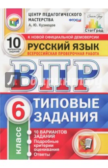 Основной рекомендуемый учебник, решебник и ГДЗ в этом году для подготовки к экзаменам ВПР - это новый сборник Андрей Кузнецов: ВПР. Русский язык. 6 класс. 10 вариантов. Типовые задания. ФГОС