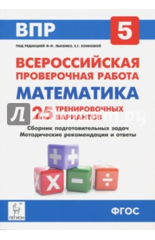 Пособие содержит необходимый материал для подготовки к всероссийской проверочной работе по математике в 5 классе. Книга содержит: описание демонстрационного варианта работы; 25 тренировочных вариантов, составленных по образцу всероссийской проверочной работы в 5-м классе (он размещён на сайте); сборник подготовительных задач для повторения изученного материала. К одному варианту работы и некоторым задачам даны методические указания и решения, ко всем вариантам и задачам сборника - ответы. Пособие будет полезно учителям, учащимся 5-х классов и их родителям. 2-е издание, дополненное.