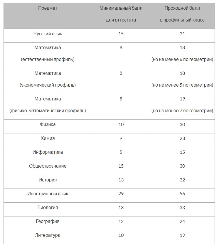 Рассматривается вероятность повышения проходного порога для вступления в профильные классы. Но, на сегодняшний день данный критерий отбора носит скорее рекомендательный характер. В 2017-2018 году минимальные баллы были распределены следующим образом: