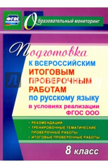 Всероссийская проверочная работа, которую напишут восьмиклассники, будет включать задания по русскому языку. Практика системы подготовки к проведению такой формы оценки качества образования отвечает требованиям ФГОС ООО и предполагает формирование диагностического ресурса, который позволит школьникам привыкнуть к экзаменам, попробовать свои возможности в регулярном выполнении контрольных работ, оценить уровень реальных знаний и умений, отследить успехи и неудачи. В пособии представлены рекомендации учителю русского языка по документационному обеспечению проведения проверочных работ, кодификатор планируемых результатов освоения основной образовательной программы основного общего образования по русскому языку для проведения процедур оценки качества основного образования, характеристика диагностических материалов, структура проверочной работы. Модели итоговых проверочных работ по русскому языку и тренировочные тематические проверочные работы составлены с учетом типичных ошибок и возникающих при изучении определенных тем трудностей. Пособие предназначено учителям русского языка, руководителям МО, заместителям директора.