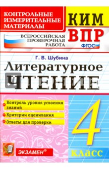 Основной рекомендуемый учебник, решебник и ГДЗ в этом году для подготовки к экзаменам ВПР - это новый сборник Галина Шубина: КИМ ВПР. Литературное чтение. 4 класс. Контрольные измерительные материалы. ФГОС