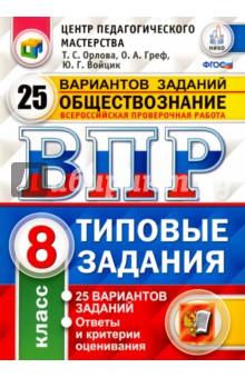 Основной рекомендуемый учебник, решебник и ГДЗ в этом году для подготовки к экзаменам ВПР - это новый сборник Орлова, Греф, Войцик: Обществознание. 8 класс. Всероссийская проверочная работа. 25 вариантов. Типовые Задания. ФГОС