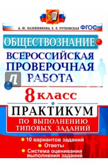 Основной рекомендуемый учебник, решебник и ГДЗ в этом году для подготовки к экзаменам ВПР - это новый сборник Лазебникова, Рутковская: Всероссийская проверочная работа. Обществознание. 8 класс. Практикум по выполнению типовых заданий