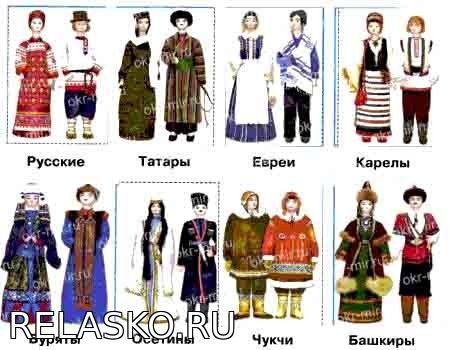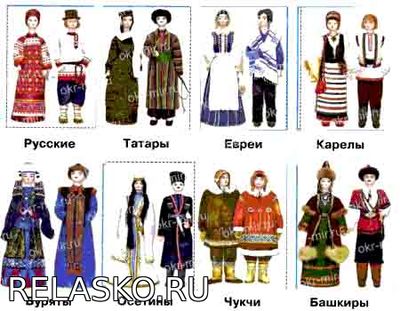 Задание: Узнайте представителей народов России по их национальным костюмам. Вырежите картинки из приложения и правильно расположите их