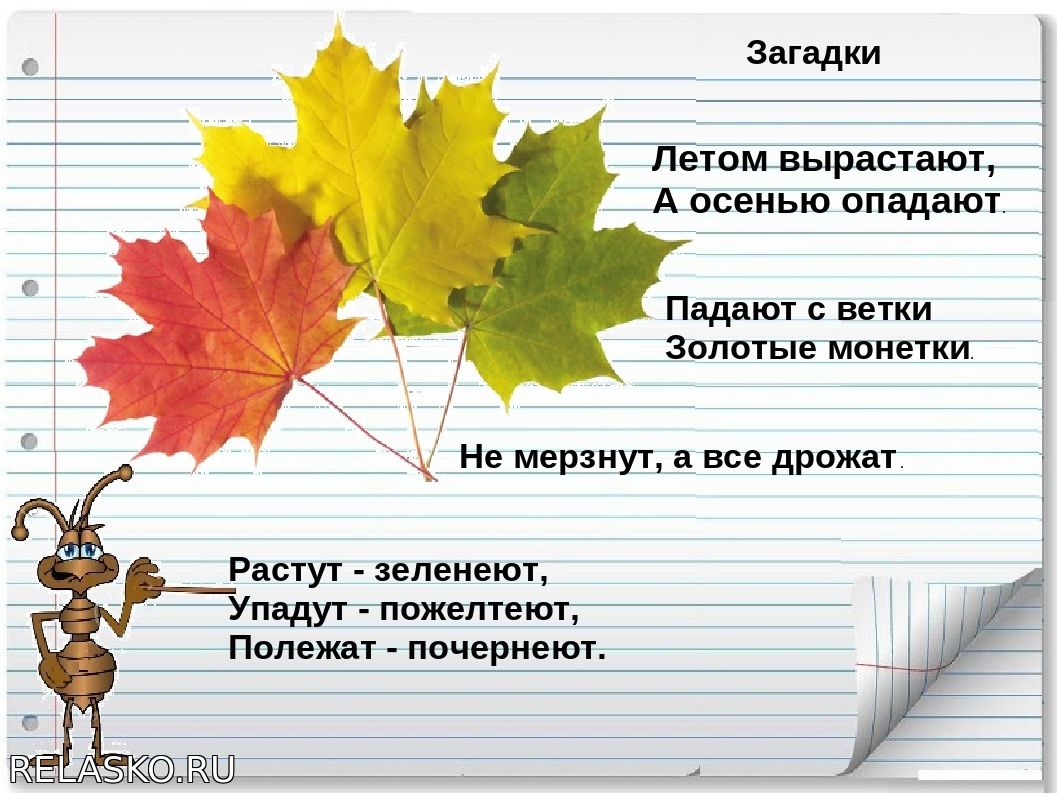 Из почек появляются, Весною распускаются, Летом шелестят, Осенью – летят.