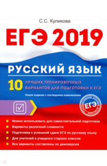 Основной рекомендуемый учебник, решебник и ГДЗ в этом году для подготовки к экзаменам ЕГЭ - это новый сборник Светлана Куликова: ЕГЭ 2019. Русский язык. 10 лучших тренировочных вариантов ЕГЭ