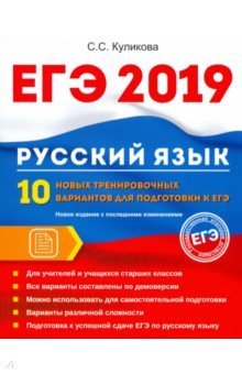 Основной рекомендуемый учебник, решебник и ГДЗ в этом году для подготовки к экзаменам ЕГЭ - это новый сборник Светлана Куликова: ЕГЭ 2019. Русский язык. 10 новых тренировочных вариантов
