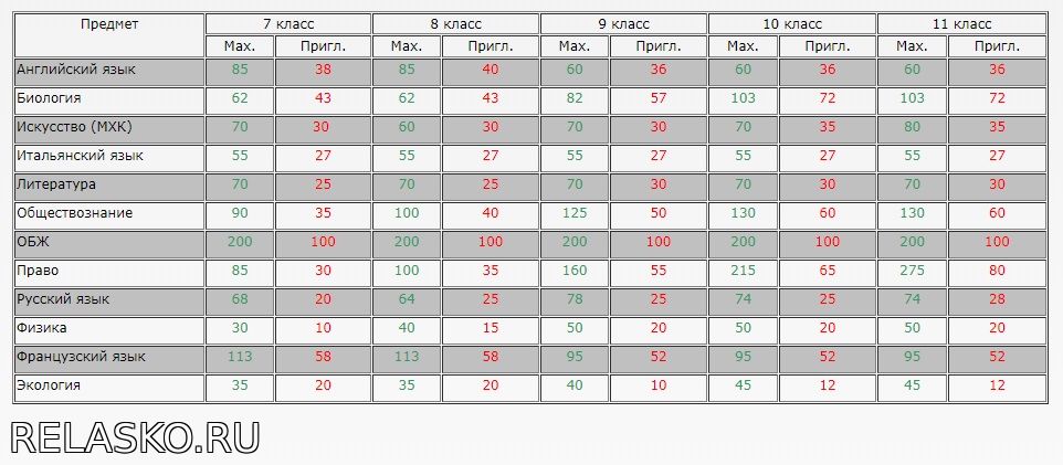Пригл. — балл, необходимый для приглашения на второй этап олимпиады; Мax. — максимально возможные баллы.