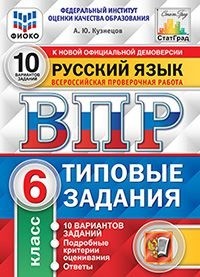 Данное пособие полностью соответствует федеральному государственному образовательному стандарту (второго поколения). Книга содержит 10 вариантов типовых заданий Всероссийской проверочной работы (ВПР) по русскому языку для учащихся 6-х классов. Сборник предназначен учащимся 6-х классов, учителям и методистам, использующим типовые задания для подготовки к Всероссийской проверочной работе по русскому языку.