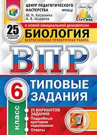 Данное пособие полностью соответствует федеральному государственному образовательному стандарту (второго поколения). Книга содержит 25 вариантов типовых заданий Всероссийской проверочной работы (ВПР) по биологии для учащихся 6-х классов. Сборник предназначен учащимся 6-х классов, учителям и методистам, использующим типовые задания для подготовки к Всероссийской проверочной работе по биологии.