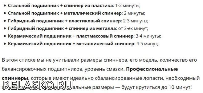 И еще - возможно, Вам только кажется, что спиннер плохо крутится, поскольку нет единой скорости для всех хэнд спиннеров, она индивидуальна и зависит от конкретной модели. Вот табличка, сравните свои показатели с ней, возможно, что Ваш спиннер и должен крутиться именно так, а у Вашего соседа просто совершенно другая модель и соответственно крутится иначе.