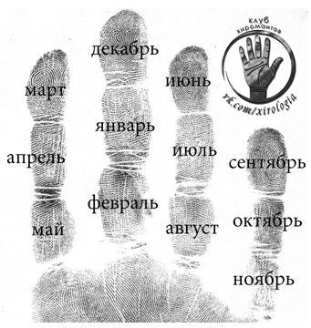 Покупка недвижимости и ее приобретение является важным моментом в жизни каждого человека, исходя из этого, такое событие не должно пройти мимо нашего внимания. Знаки недвижимости (покупка, приобретение, разделение) распространены по нескольким участкам ладони – это линия Судьбы, линия Солнца, и как не странно – линия Сердца, но самыми точными в рассмотрении этих вопросов являются пальцевые фаланги, так как по ним можно наиболее детально предположить покупку или продажу недвижимости. Распределение месяцев на пальцах обозначено на рисунке
