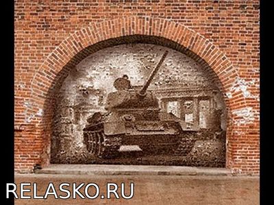 Композиционно панно представляет собой мозаичный триптих, составленный из фотографий военных лет. В центре его воссоздана фотография, запечатлевшая легендарный танк Т-34 на улице Берлина, слева – истребитель Ла-5, справа – ночной залп реактивной установки «Катюша». Самая знаменитая военная техника 1940-х производилась на предприятиях города Горького: танки – на заводе «Красное Сормово», самолет Ла-5 был разработан в ОКБ Лавочкина и выпускался на заводе им. С. Орджоникидзе, гвардейские реактивные минометы «Катюша» собирали во многих советских городах, в том числе и в городе Горьком.