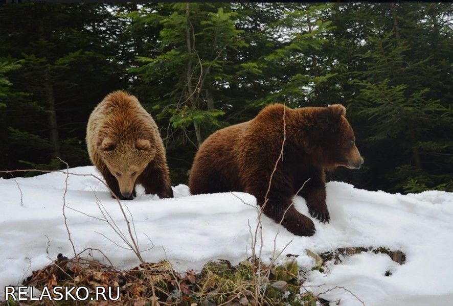 Весной медведи часто поедают различные балласты: труху пней, злаковую ветошь, строительный мусор муравейников. Вместе с тем едят в это время хвою ели и сосны, побеги черники и ее корни, почки осины, липы, рябины, клена, ивы, иногда и чагу (березовый гриб), а также вытаивающие из-под снега различные осоки, выгрызая стебли до междоузлий, на болотах — пушицу и перезимовавшую клюкву. Следует отметить, что существенное значение клюква имеет лишь в том случае, когда запасы ее значительны. Например, в Дарвинском заповеднике, расположенном на северо-востоке Калининской обл. (практически в пределах того же региона подзоны южной тайги, где находится и Центральнолесной заповедник), в весенний период она играет немаловажную рать в питании зверей (Калецкая, 1973), и объясняется это тем, что в районе заповедника на обширных верховых болотах запасы клюквы значительны, она доступна для зверей и обеспечивает их кормом в течение многих дней. В отдельных регионах, где произрастает сосна сибирская, кедровый стланик и имеются обширные ягодники, сохраняющие плоды до весны, медведи имеют возможность весной потреблять в достаточном количестве и калорийные корма, но бывает это только после минувшего урожайного года. И все же независимо от наличия кормов в весенний период звери теряют все жировые запасы, хотя из берлог выходят достаточно упитанными.