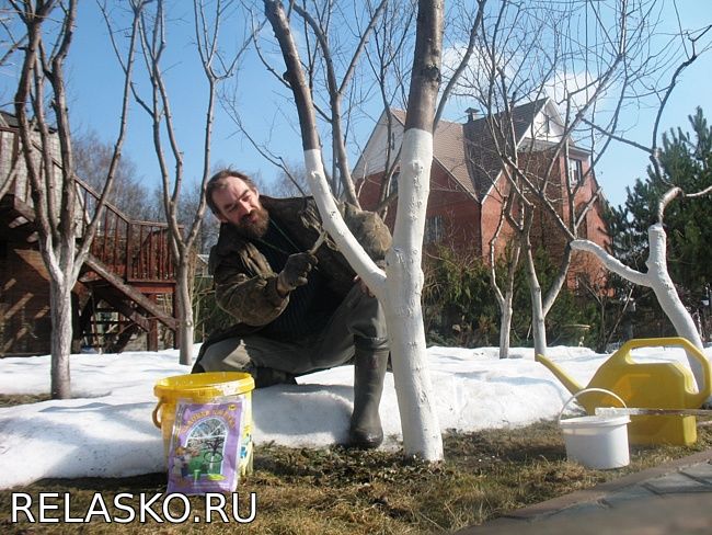осмотр всех плодово-ягодных насаждений; обрезка плодовых деревьев, формирование ягодных кустов; прививки и перепрививки деревьев; заготовка посадочного материала, проверка саженцев, хранящихся и прикопанных с осени; обработка растений от перезимовавших вредителей и возбудителей заболеваний; очистка стволов взрослых садовых деревьев, обработка и дезинфекция ран, дупел и повреждений, обрезка отмерших и сухих ветвей; побелка штамбов и оснований скелетных ветвей; перекопка сильно уплотнившейся за зиму почвы, перекопка участков, не вскопанных осенью, а также рыхление сухой земли в приствольных кругах; подкормки садовых посадок; подготовка материала для дымовых куч (прошлогодняя листва, хвоя, срезанные ветви и пр.); — проведение ранневесеннего полива – в случае, если запаса вешней влаги в почве недостаточно и земля слишком сухая; обрезка и сжигание ветвей деревьев, пораженных кольчатым шелкопрядом; чистка старых скворечников и синичников либо установка новых домиков и кормушек для птиц; постепенное снятие укрытий (лапника, мульчи и т. д.) с перезимовавших растений – данную процедуру осуществляют в зависимости от погодных условий и относительной стабилизации тепла; посадка семечковых, косточковых и ягодных культур, пересадка деревьев и кустарников. Обычно все работы в саду в апреле начинают с тщательного осмотра садовых насаждений и изучения их состояния после зимы. В процессе осмотра сада определяют те деревья и кустарники, которые требуют пересадки – в том случае, если они, к примеру, были высажены не в самом подходящем месте. Также во время «ревизии сада» можно легко выявить культуры, пострадавшие от солнечных ожогов, морозов, сильных ветров, вредителей и болезней.