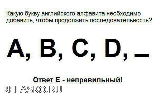 Попробуйте догадаться, какую букву надо добавить, чтобы продолжить последовательность: A, B, C, D, _