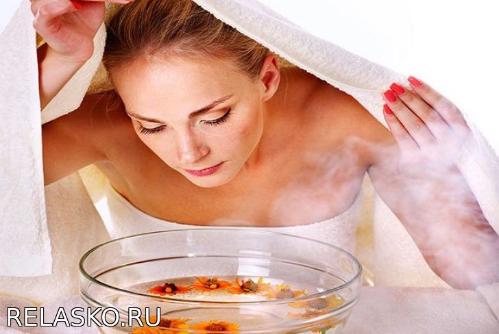 Залейте выбранные травы кипятком, наклонитесь над емкостью и накройтесь чистым полотенцем. Держите лицо на расстоянии не менее 12 см от воды. Распаривание должно длиться от 5 до 10 минут. Этого времени достаточно, чтобы эффективно прочистить поры. Если лицу становится горячо – значит, вы держите его слишком близко к воде. Следите, чтобы не обжечь кожу.