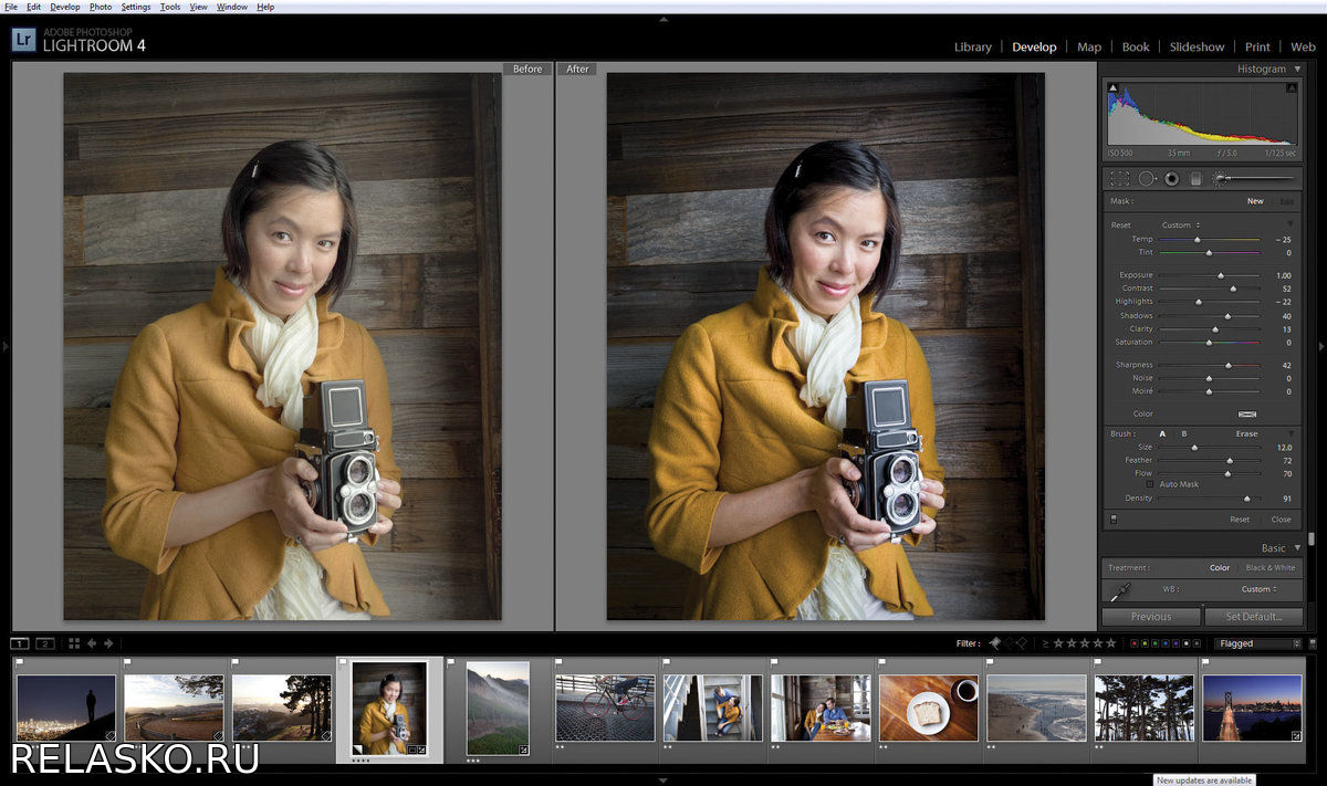 В базовой версии программы доступно десять “пленок” с регулируемой интенсивностью — Cafe, Black, Windy, Roasted, Popstar и т.д. В дополнение к фильтрам можно применять различные эффекты, включая размытие и виньетирование.