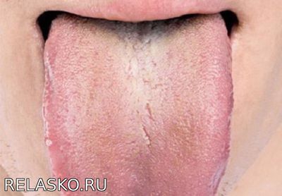 белый налет по всей поверхности языка; боль и жжение во время принятия пищи и питья; незначительное повышение температуры тела; покраснение слизистой языка и всей ротовой полости; затруднения при разговоре; ощущение, что что-то прилипло к языку; общая слабость и плохое самочувствие.