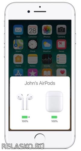 Когда вы откроете крышку чехла, на экране вашего iPhone отобразится экран со статусом зарядки AirPods. Здесь вы найдёте процент зарядки самих наушников и чехла.