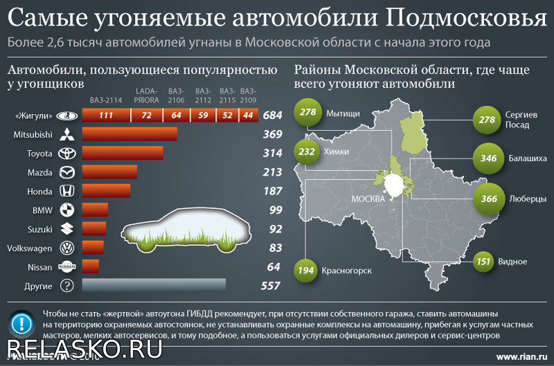 Самые угоняемые автомобили в Московской области в 2018 году по моделям