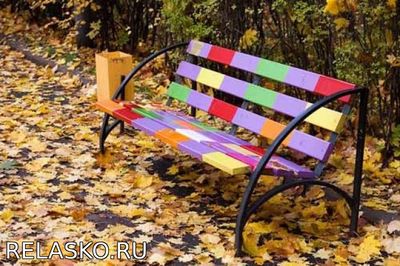 Цвет краски подбирайте таким образом, чтобы скамья хорошо вписалась в общий вид сада (участка).