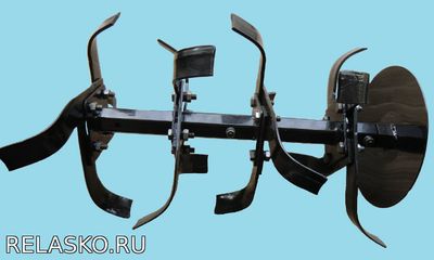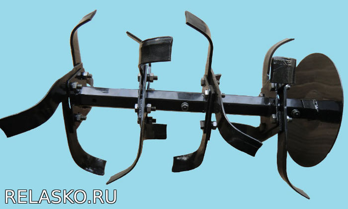 Конструкция представляет собой ось, с приваренными пластинами, к которым непосредственно и крепятся саблевидные ножи. Готовая фреза может состоять из нескольких таких секций, соединенных между собой при помощи болтов. Добавляя или убирая секцию, можно регулировать ширину культивации.
