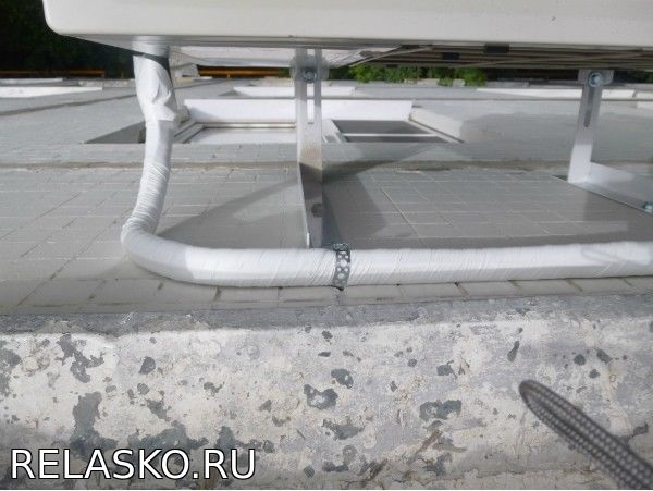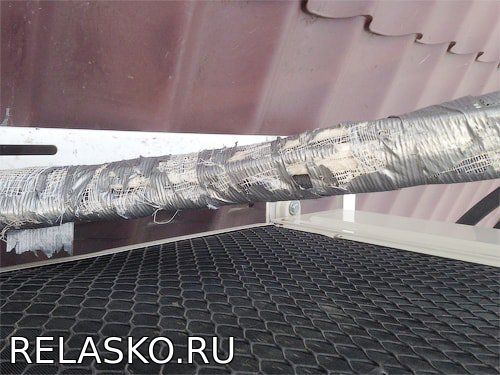 Для продления срока утеплителей и самой фреоновой трассы производиться обмотка трассы специальной тефлоновой лентой. Некоторые вместо тефлоновой ленты используют армированный скотч. В отличие от него, армированный скотч быстрее рассыхается. Наглядно это можно увидеть на фото.