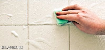 Если профилактические действия не помогли, и грунтовочный раствор всё же попал на керамику, нужно не откладывая на потом, отмыть его с облицовки. В случае своевременного обнаружения пятна, смыть его с поверхности кафеля, можно обыкновенной водой и чистой тряпкой.