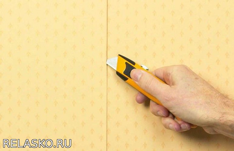 Далее маскируем стыки на обоях в черновом варианте, то есть, подводим их как можно точнее, всматриваемся в мелкие накладки и щели отступов.