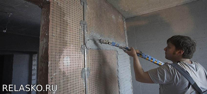 После укрепления и растягивание сетки может потребоваться установить маяки, после чего можно начинать работы по штукатурке. В большинстве случаев требуется нанесения двух и более слоев. При этом второй наносится только после полного высыхания первого.