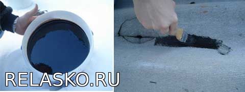 Внимание. Такие мастики не пригодны для приклеивания на кровлю рулонных материалов, так как в результате испарения воды под рулонным кровельным ковром образуются пузыри и вздутие. Поэтому мастики, в основе которых лежит битумная паста, используются при проведении ремонтных работ на кровле по заделке трещин и швов и для нанесения нового слоя на чистую поверхность.