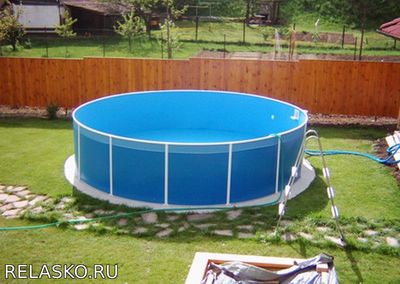 Специально для бассейна я залил бетонную площадку, и как многие делают, наложил картонных коробок и на них установил бассейн. Всё было хорошо, но до поры до времени, уже после первого дождя, весь картон под ним размок, а плюс еще и 6-ти тонное давление воды и в итоге, все те маленькие камешки, неровности бетона, которые скрывал картон, вылезли наружу, чем и повредили дно бассейна в нескольких места... Пришлось клеить. И вот однажды мне посоветовали знающие люди вот такой выход из положения, а именно установить бассейн на полиэтиленовый утеплитель с фольгой с одной стороны толщиной в 1см. Уложил его фольгой вниз, а куски утеплителя (он шириной по 1,20 см) просто склеил широким скотчем. Лишние углы поотрезал. В итоге бассейн уже стоит почти месяц на этой подкладке и все отлично!