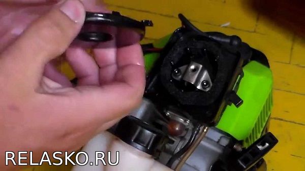 Во время работы косы, при заборе топлива из бака, чтобы не создавался внутри вакуум (чтобы бак не сжимался), есть ещё и потребность в заборе воздуха из вне... Этот забор происходит либо посредством клапана, что расположен в крышке бензобака (резиновый грибок с хитрым отверстием внутри), либо клапана расположенного непосредственно на самом баке, тогда крышка просто выглядит, как крышка с резиновым уплотнителем и без отверстий... Через клапан воздух попадает в бак, но наружу не может вырваться...