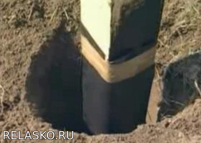 Во-вторых, для защиты дерева его подземную часть часто смазывают расплавленным битумом, оборачивают рубероидом. При этом образуется своеобразный «стакан». Влага, попав в него однажды, уже не может его покинуть и дерево постоянно имеет свой собственный запас влаги.