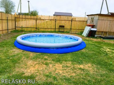 Шаг 1 Сразу после покупки бассейна определиться с местом для его установки. Площадку под искусственный водоем выбирайте солнечную и находящуюся вдали от деревьев. Выполнение последнего условия поможет предотвратить загрязнение воды опавшими листьями, лепестками и плодами.