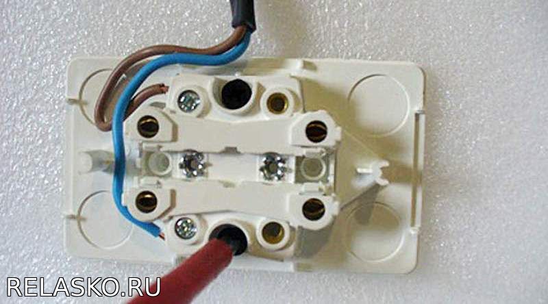 Подключение проводов по цветовой принадлежности Все жилы проводника: синяя для нулевого «нулевого», красно-коричневая для «фазного» и желто-зеленая для «заземления» – подключаются параллельно При монтаже шлейфом приходящий и уходящий кабели соединяют непосредственно на контактной части устройства. По этой причине мастера рекомендуют использовать модели, оснащенные плоским пружинным контактом.
