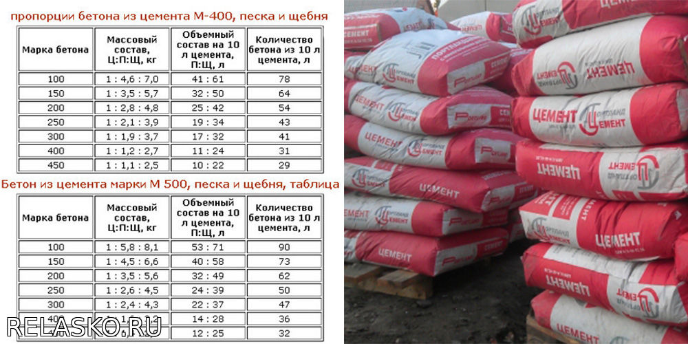 Сколько нужно мешков цемента на 1 куб бетона Стройматериалы лучше приобретать в мешках, расфасованных по 50 кг, — так легче рассчитать пропорции компонентов. Например, для изготовления бетонной смеси под фундамент рекомендуемое соотношение цемента, песка, щебня и воды — 1:3:5:0.5. Это означает, что на 1 ведро цемента нужно взять 3 ведра песка, 5 ведер щебня (гравия) и полведра воды.