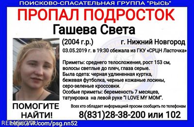 Пропавшая в Нижнем Новгороде 15-летняя Света Гашева найдена, сообщили в поисково-спасательной группе 'Рысь".
